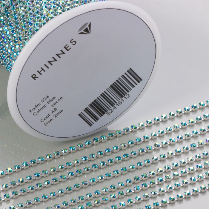 Taśma z kryształkami kolor srebrny aquamarine AB 2mm