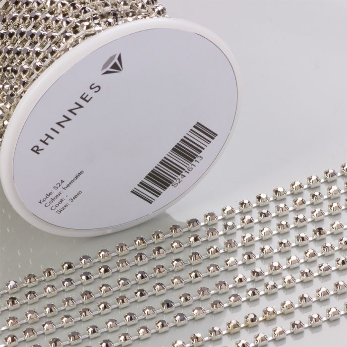Taśma z kryształkami kolor srebrny hematite 3mm