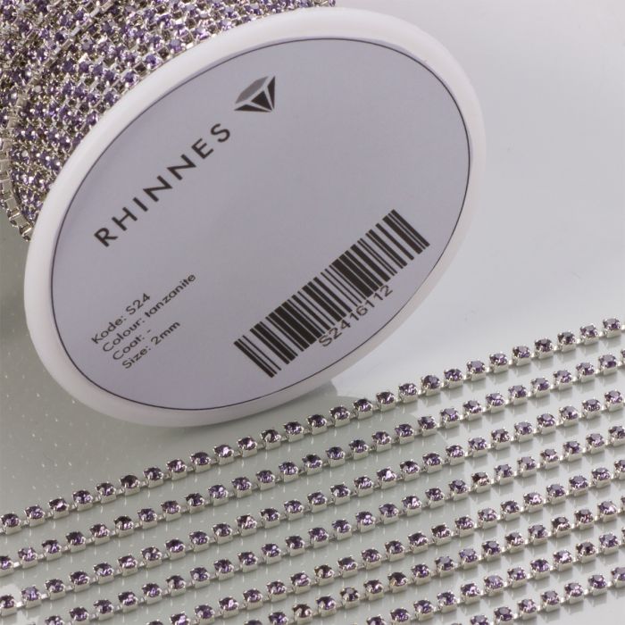 Taśma z kryształkami kolor srebrny lt. amethyst 2mm