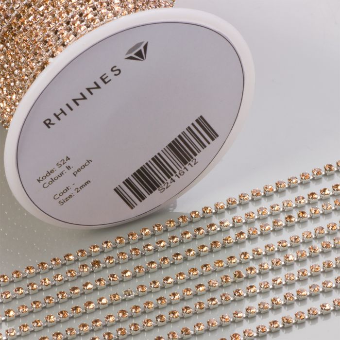 Taśma z kryształkami kolor srebrny lt. peach 2mm