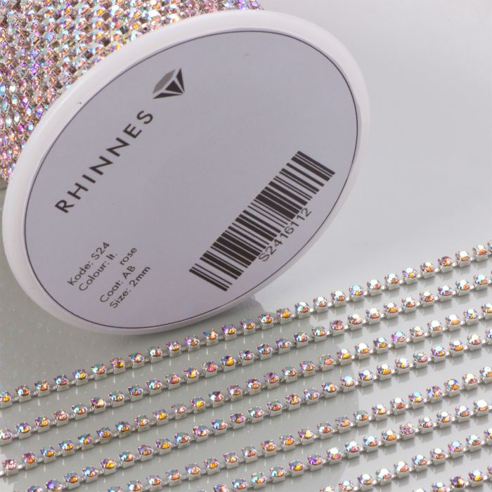 Taśma z kryształkami kolor srebrny lt. rose AB 2mm