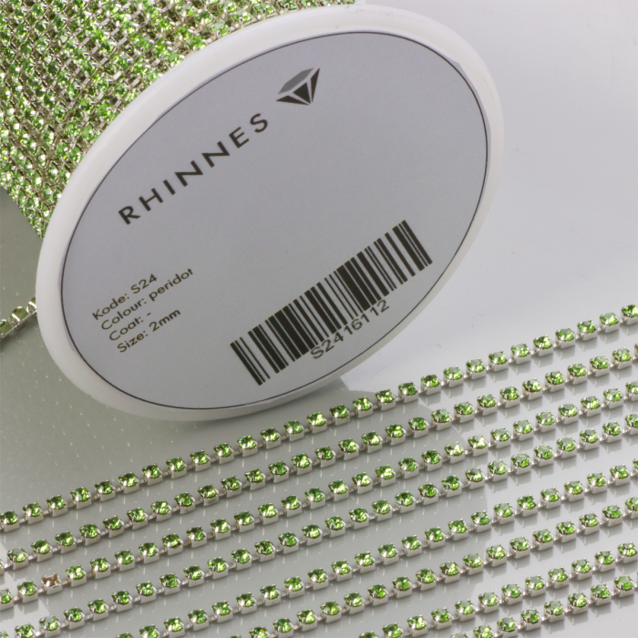 Taśma z kryształkami kolor srebrny peridot 2mm