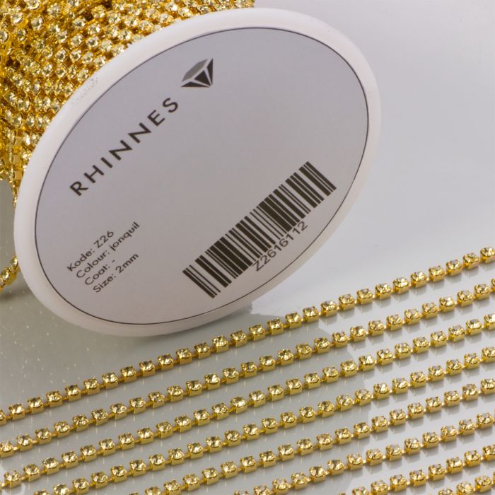 Taśma z kryształkami kolor złoty jonquil 2mm