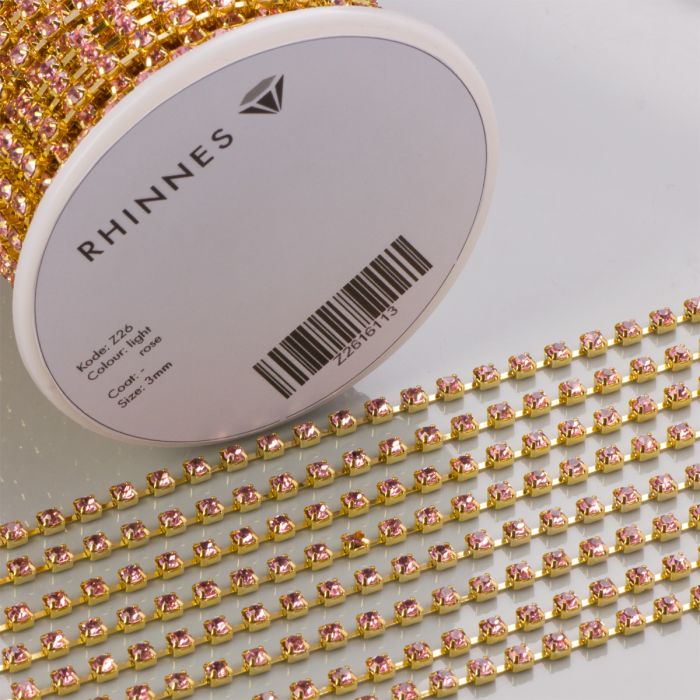 Taśma z kryształkami kolor złoty lt. rose 3mm