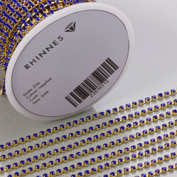 Taśma z kryształkami kolor złoty sapphire 2mm