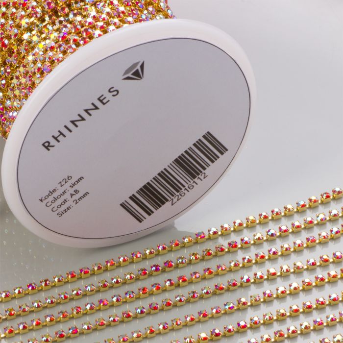 Taśma z kryształkami kolor złoty siam AB 2mm