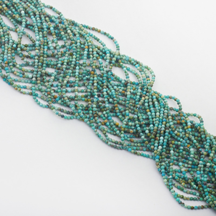 Bardzo drobne kamienie naturalne, wykonane z turkusu. Są w kształcie kulek fasetowanych. Dominującym kolorem jest niebieski z domieszką zieleni. *Ponieważ są to kamienie naturalne mogą się nieznacznie różnić od siebie rozmiarem.*Rozmiar podany w nazwie produktu jest wartością orientacyjną. Charakterystyka: