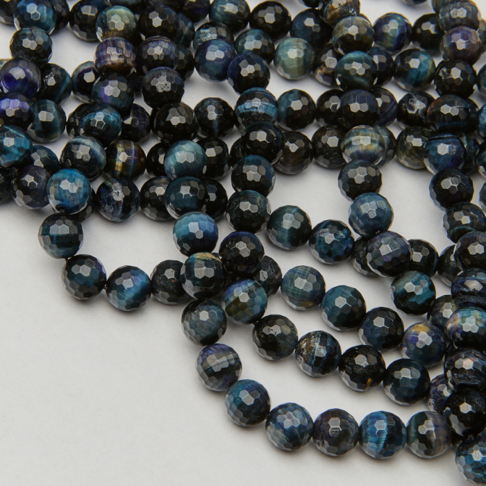 Tygrysie oko kulka fasetowana granatowa 8mm