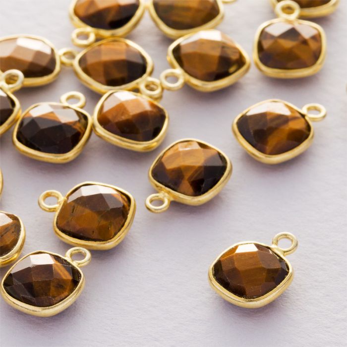 Tygrysie oko kwadrat fasetowany zawieszka w okuciu pozłacanym AG925 8mm