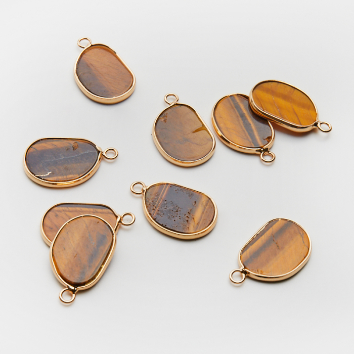 Tygrysie oko owal nieregularny zawieszka w okuciu 25mm