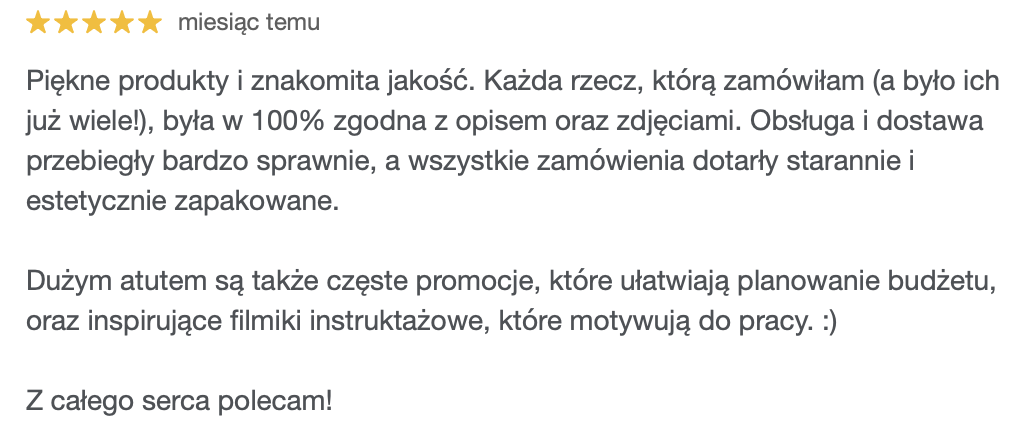 Żeby nie było, że nie mamy nic na potwierdzenie tych słów, zobaczcie, co piszą o nas Ci, którzy nam zaufali i zrobili już u nas zakupy.