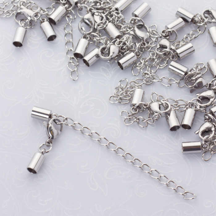 Zapięcia w zestawie ze stali chirurgicznej w kolorze srebrnym 3mmTo funkcjonalny komponent do biżuterii handmade. Stal chirurgiczna 316L jest ceniona za odporność na korozję i estetyczny wygląd w codziennym użytkowaniu.Zapięcie ze stali chirurgicznej 316L w kolorze