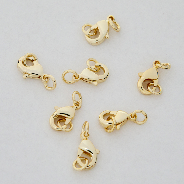 Zapięcie karabińczyk z kółeczkami z mosiądzu w kolorze złotym 10mm