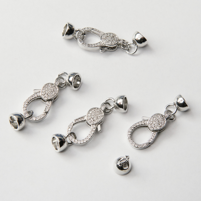 Podsumowanie Zapięcie ozdobne karabińczyk z cyrkoniami w kolorze srebrnym to praktyczny i estetyczny komponent, który pomaga stworzyć wygodne, trwałe i spójne wykończenie biżuterii handmade.