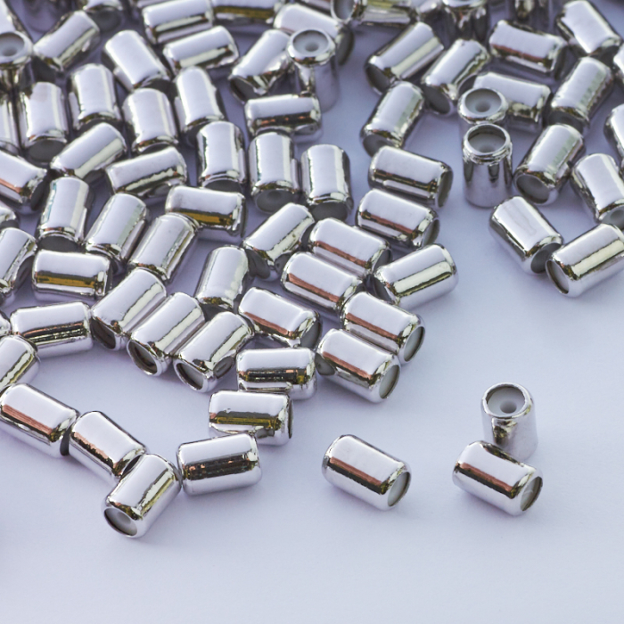 Zapięcie stoper z silikonem do cienkich sznureczków walec srebrny 5x4mm