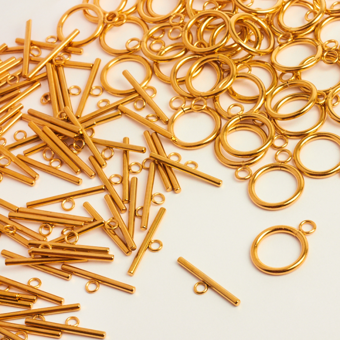 Zapięcie toggle kółko i patyczek ze stali chirurgicznej w kolorze złotym 16mmTo funkcjonalny komponent do biżuterii handmade. W biżuterii handmade stal chirurgiczna 316L jest ceniona za dobry wygląd, odporność na korozję i wygodę codziennego użytkowania.Zapięcie ze stali chirurgicznej 316L w kolorze