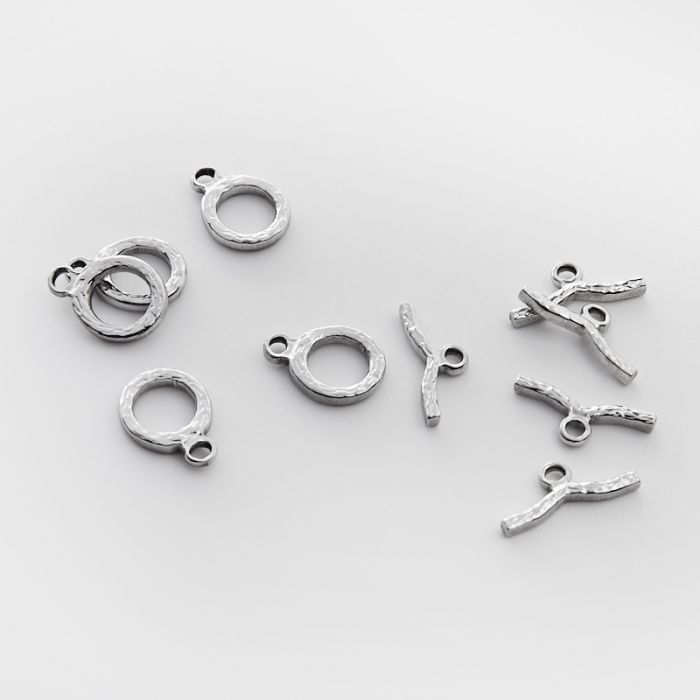 Zapięcie toggle ze stali chirurgicznej gniecione w kolorze srebrnym 11,5x12mm