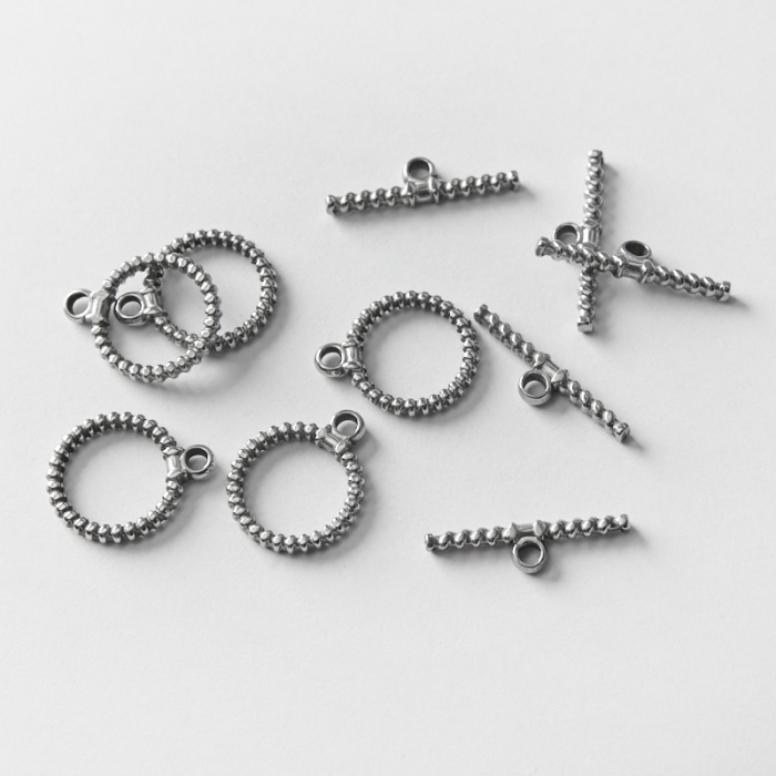 Zapięcie toggle ze stali chirurgicznej spiralka w kolorze srebrnym 16mmTo uniwersalny element wykończeniowy i dekoracyjny do projektów jubilerskich. W biżuterii handmade stal chirurgiczna 316L jest ceniona za dobry wygląd, odporność na korozję i wygodę codziennego użytkowania.Zapięcie ze stali chirurgicznej 316L w kolorze