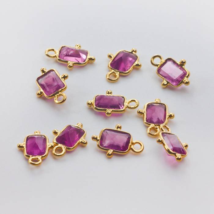 Zawieszka ametyst fasetowany prostokąt w okuciu AG925 pozłacany 6x4mm