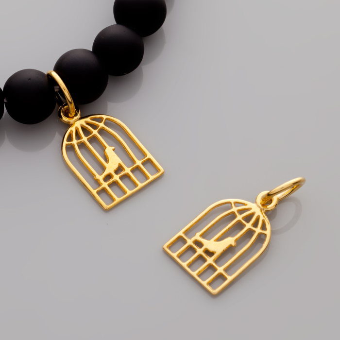 Zawieszka ażurowa kanarek w klatce AG925 pozłacana 18mm