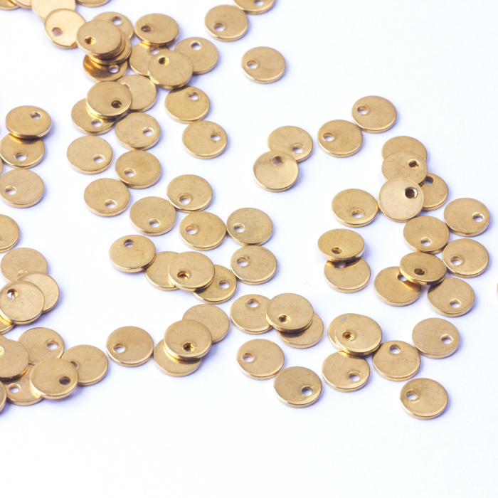 Zawieszka blaszka okrągła gładka, pozłacana 6mmTo starannie wykonany produkt ze stali chirurgicznej 316L, który dobrze prezentuje się w codziennym użytkowaniu. W biżuterii handmade stal chirurgiczna 316L jest ceniona za dobry wygląd, odporność na korozję i wygodę codziennego użytkowania.Zawieszka ze stali chirurgicznej 316L to dekoracyjny element, który nadaje biżuterii charakteru i pozwala tworzyć spersonalizowane projekty. Świetnie sprawdza się w naszyjnikach, bransoletkach, kolczykach oraz drobnych charmsach.Forma lub motyw