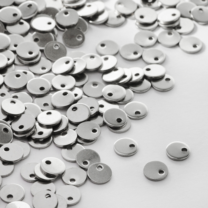 Zawieszka blaszka okrągła gładka w kolorze srebrnym 6mmTo dopracowany produkt ze stali chirurgicznej 316L, który łączy praktyczność z estetycznym wyglądem. Stal chirurgiczna 316L dobrze sprawdza się w biżuterii noszonej na co dzień, ponieważ łączy trwałość z estetycznym wykończeniem.Zawieszka ze stali chirurgicznej 316L to dekoracyjny element, który nadaje biżuterii charakteru i pozwala tworzyć spersonalizowane projekty. Świetnie sprawdza się w naszyjnikach, bransoletkach, kolczykach oraz drobnych charmsach.Forma lub motyw
