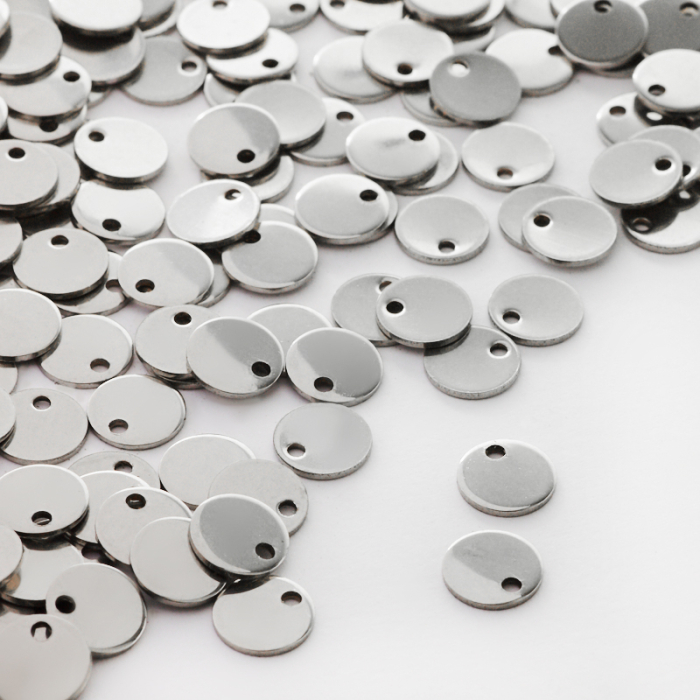 Zawieszka blaszka okrągła gładka w kolorze srebrnym 8mmTo starannie wykonany produkt ze stali chirurgicznej 316L, który dobrze prezentuje się w codziennym użytkowaniu. Stal chirurgiczna 316L jest ceniona za odporność na korozję i estetyczny wygląd w codziennym użytkowaniu.Zawieszka ze stali chirurgicznej 316L to dekoracyjny element, który nadaje biżuterii charakteru i pozwala tworzyć spersonalizowane projekty. Świetnie sprawdza się w naszyjnikach, bransoletkach, kolczykach oraz drobnych charmsach.Forma lub motyw