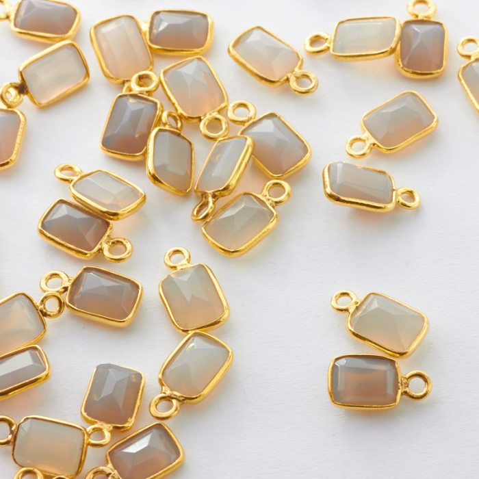 Zawieszka chalcedon szary fasetowany w okuciu pozłacanym AG925 6,5x5mm