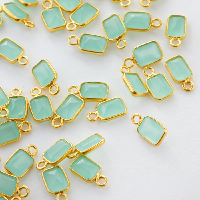 Zawieszka chalcedon zielony fasetowany w okuciu pozłacanym AG925 7x5mm