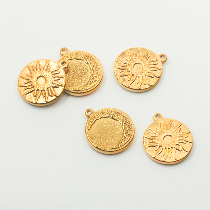 Zawieszka dwustronna księżyc i słońce ze stali chirurgicznej w kolorze złotym 15mmTo dopracowany produkt ze stali chirurgicznej 316L, który łączy praktyczność z estetycznym wyglądem. Stal chirurgiczna 316L dobrze sprawdza się w biżuterii noszonej na co dzień, ponieważ łączy trwałość z estetycznym wykończeniem.Zawieszka ze stali chirurgicznej 316L to dekoracyjny element, który nadaje biżuterii charakteru i pozwala tworzyć spersonalizowane projekty. Świetnie sprawdza się w naszyjnikach, bransoletkach, kolczykach oraz drobnych charmsach.Forma lub motyw