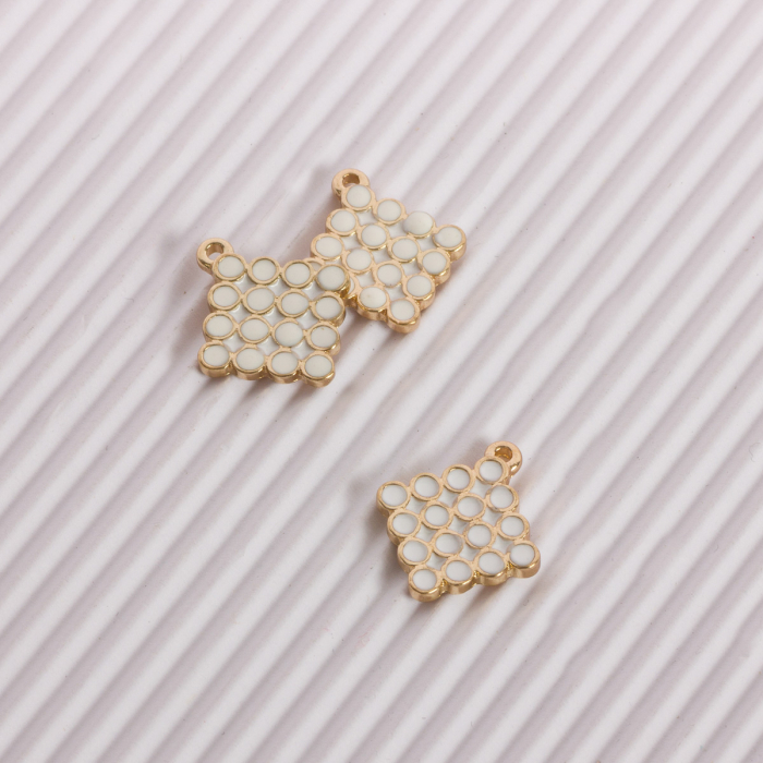Zawieszka emaliowana kwadrat w bąbelki biały 15mm