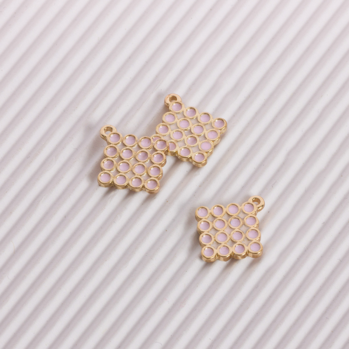 Zawieszka emaliowana kwadrat w kółeczka różowy 15mm