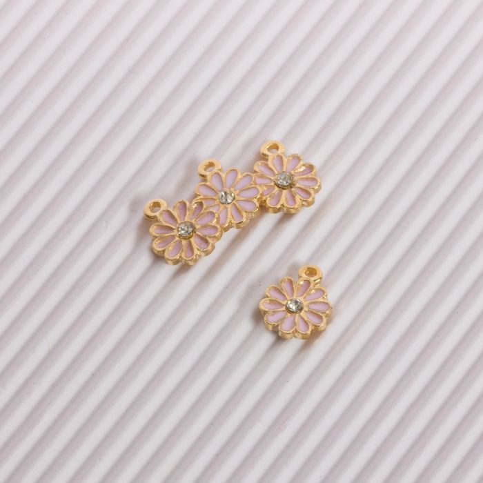 Zawieszka emaliowana kwiatki z kryształkiem różowy 10mm