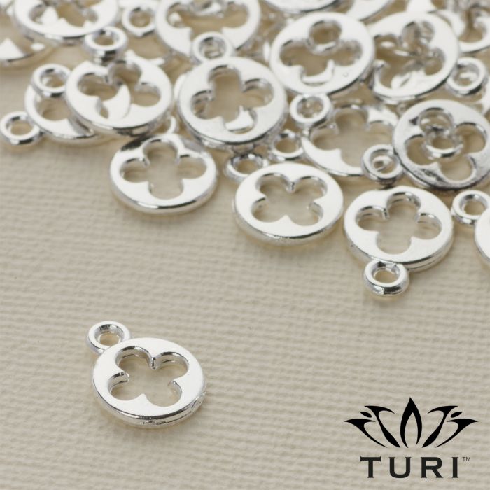 Zawieszka kółko z kwiatkiem w srebrnym kolorze 9.5mm
