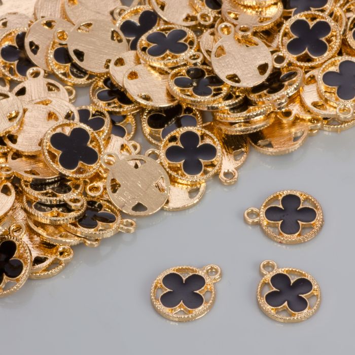 Zawieszka kruczoczarny kwiatek w kółeczku 12.5mm