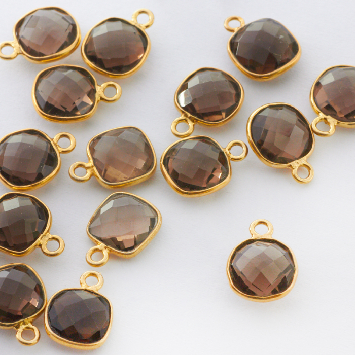 Zawieszka kryształ dymny fasetowany w okuciu pozłacanym AG925 8mm