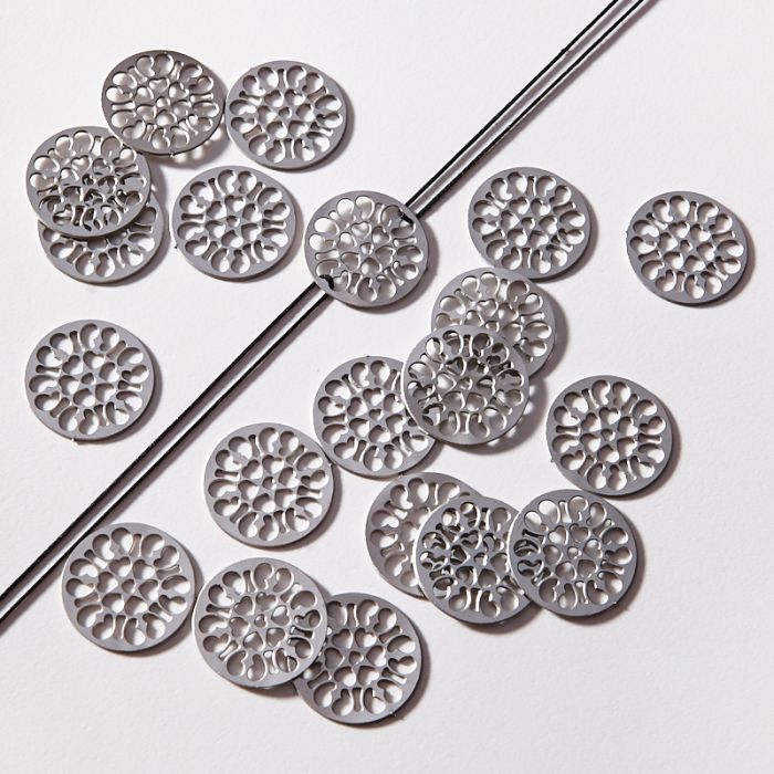 Zawieszka łącznik ze stali chirurgicznej serwetka z sercami w kolorze srebrnym 18,4mm