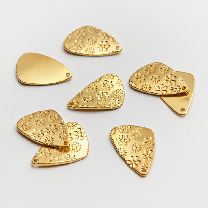 Zawieszka łezka wygięta w kwiatki ze stali chirurgicznej w kolorze złotym 22mmTo estetyczny element biżuteryjny ze stali chirurgicznej 316L, chętnie wybierany do nowoczesnych projektów. W biżuterii handmade stal chirurgiczna 316L jest ceniona za dobry wygląd, odporność na korozję i wygodę codziennego użytkowania.Zawieszka ze stali chirurgicznej 316L to dekoracyjny element, który nadaje biżuterii charakteru i pozwala tworzyć spersonalizowane projekty. Świetnie sprawdza się w naszyjnikach, bransoletkach, kolczykach oraz drobnych charmsach.Forma lub motyw