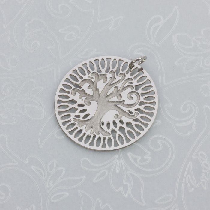 Zawieszka okrągła drzewko stal chirurgiczna z kółeczkiem w kolorze srebrnym 20mm