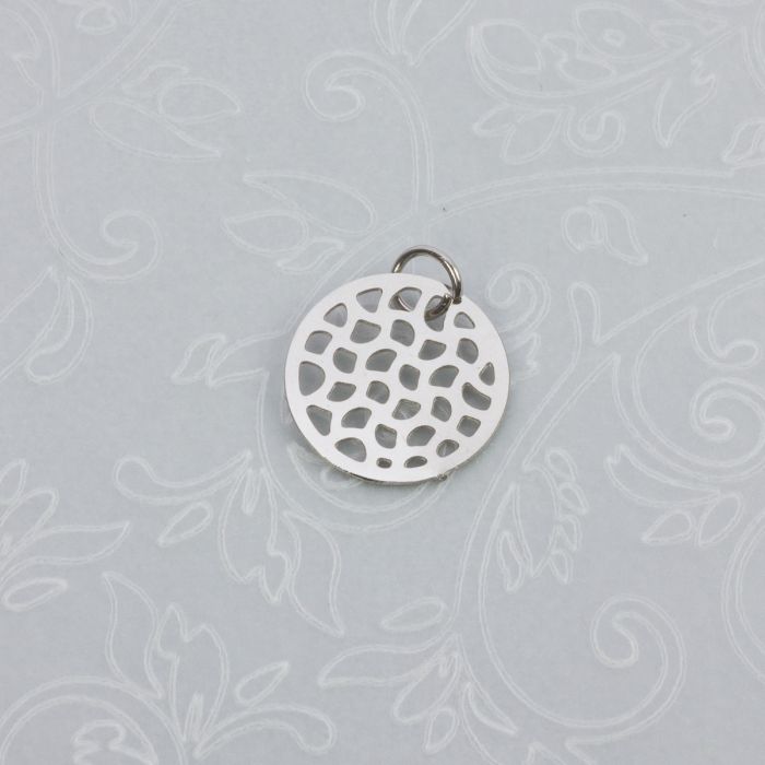 Zawieszka okrągła sitko stal chirurgiczna z kółeczkiem w kolorze srebrnym 12mm