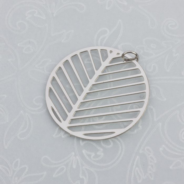Zawieszka okrągła wycinana liść stal chirurgiczna z kółeczkiem w kolorze srebrnym 25mm