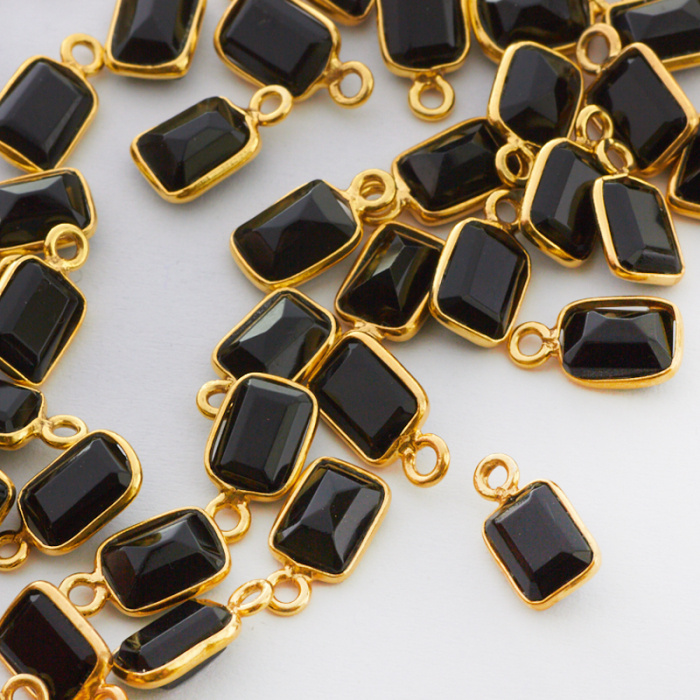 Zawieszka onyks prostokąt fasetowany w okuciu pozłacanym AG925 7x5mm
