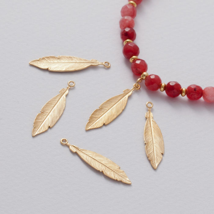 Zawieszka piórko ozdobne pozłacana AG925 30 mm