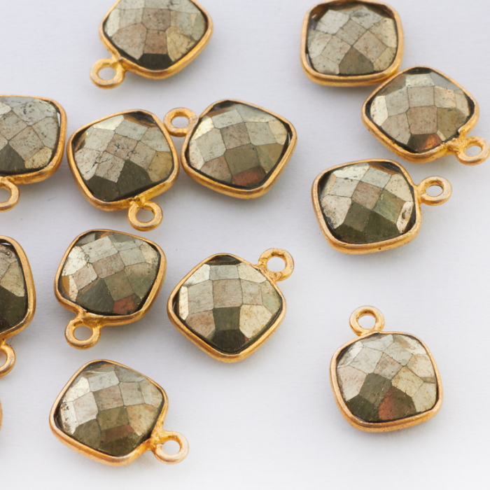 Zawieszka piryt fasetowany w okuciu pozłacanym AG925 8mm