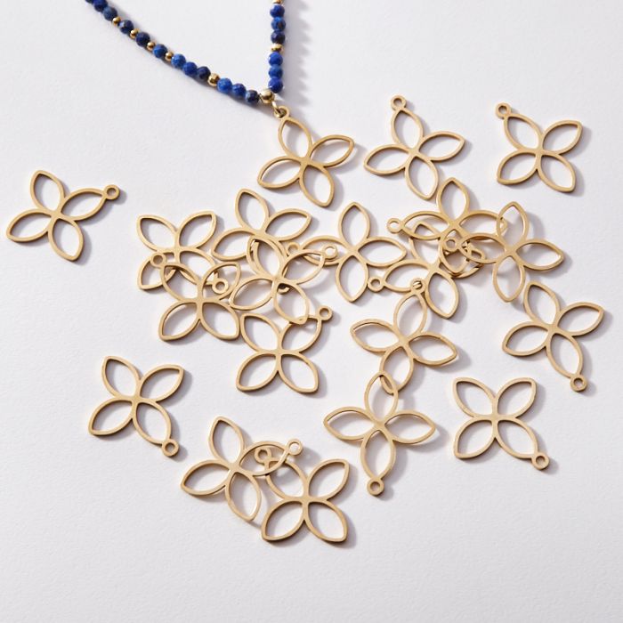 Zawieszka pozłacana ze stali chirurgicznej czterolistny kwiatek 22,5mm
