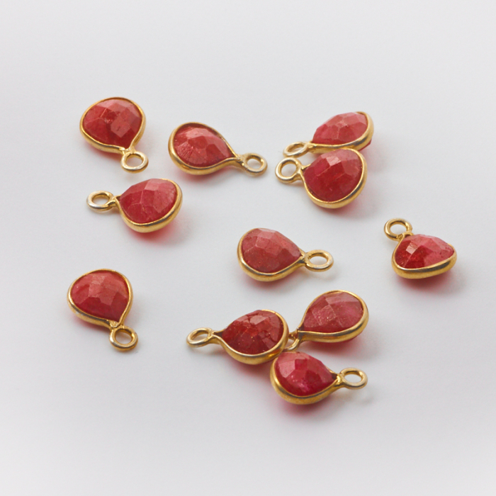 Zawieszka rubin łezka fasetowana w okuciu AG925 pozłacana 6mm