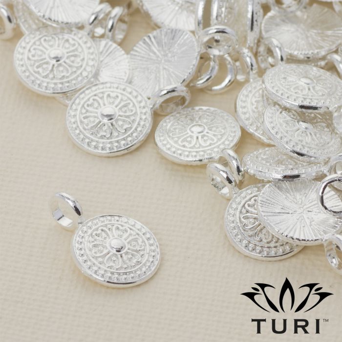 Zawieszka tarcza z celtyckim wzorkiem w kolorze srebrnym 17.5x12 mm