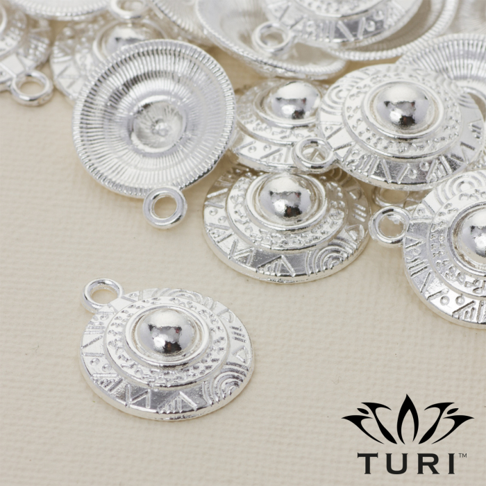 Zawieszka tarcza ze wzorkami w srebrnym kolorze 18mm