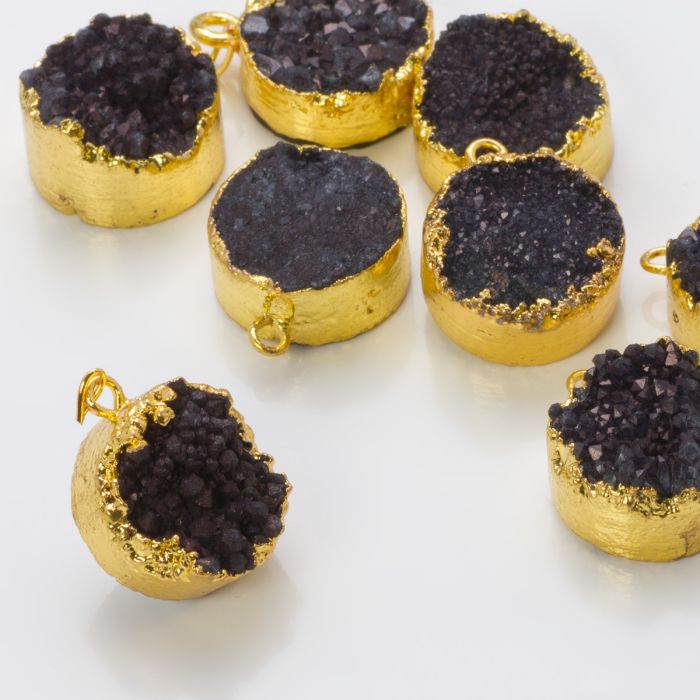 Zawieszka w okuciu agat z druzami krążek 16mm
