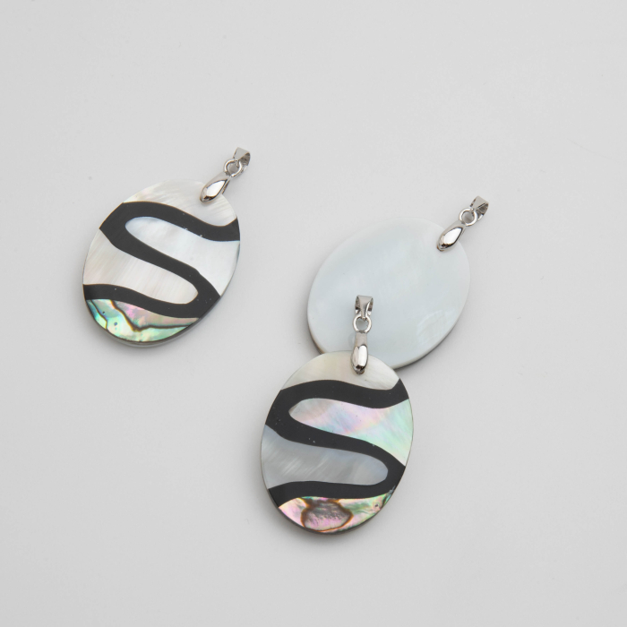 Zawieszka z muszli Paua owal w fale 43x24,5mm